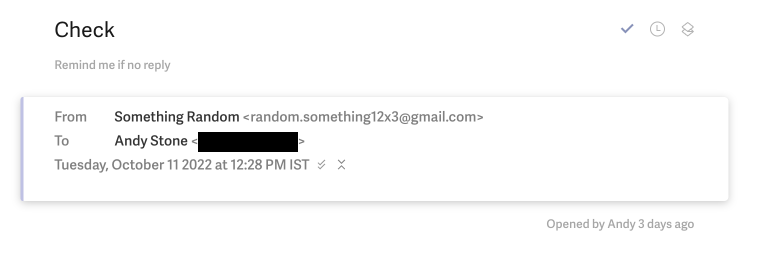 One of our reporting team members also sent a test email to Stone at his @fb.com email address using an email client called Superhuman – which sends ‘read statuses’ to the sender every time an email is opened – at 12:28 pm IST on October 11. This email was sent to Stone before The Wire published his leaked internal email conversation. On October 12 at 7:54 pm IST, The Wire’s staff received a notification from Superhuman confirming that the email had been opened.