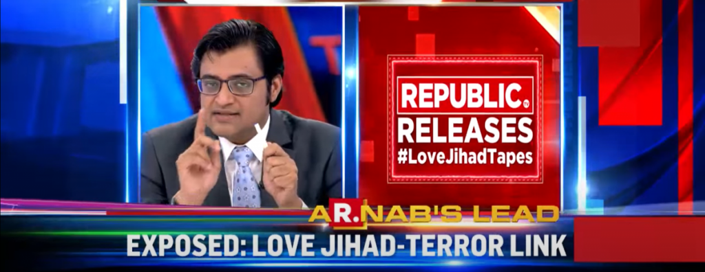 A Republic TV broadcast on love jihad. Photo:YouTube/Republic World