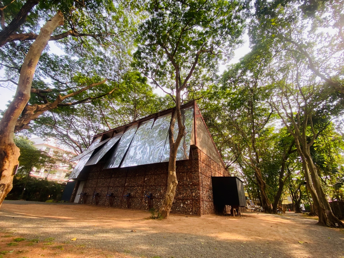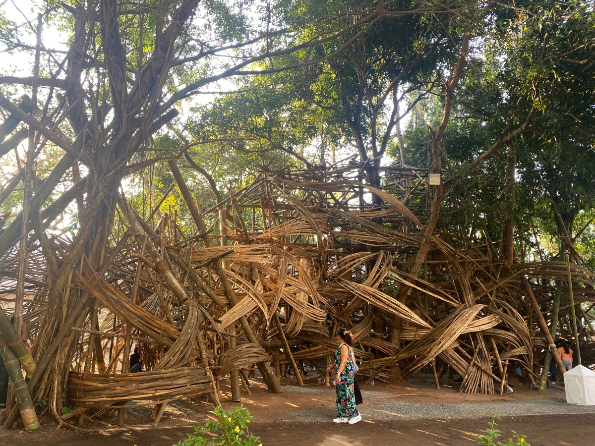 Designed by Samira Rathod, the Biennale Pavilion at Cabral Yard – a performance venue – is constructed entirely of construction debris. A bamboo installation by Delhi-based Asim Waqif, whose work weaves ecology and anthropology, is also on display at Aspinwall.